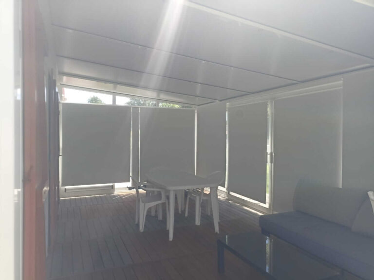La sécurité de la piscine est assurée par rideau homologué à commande électrique.